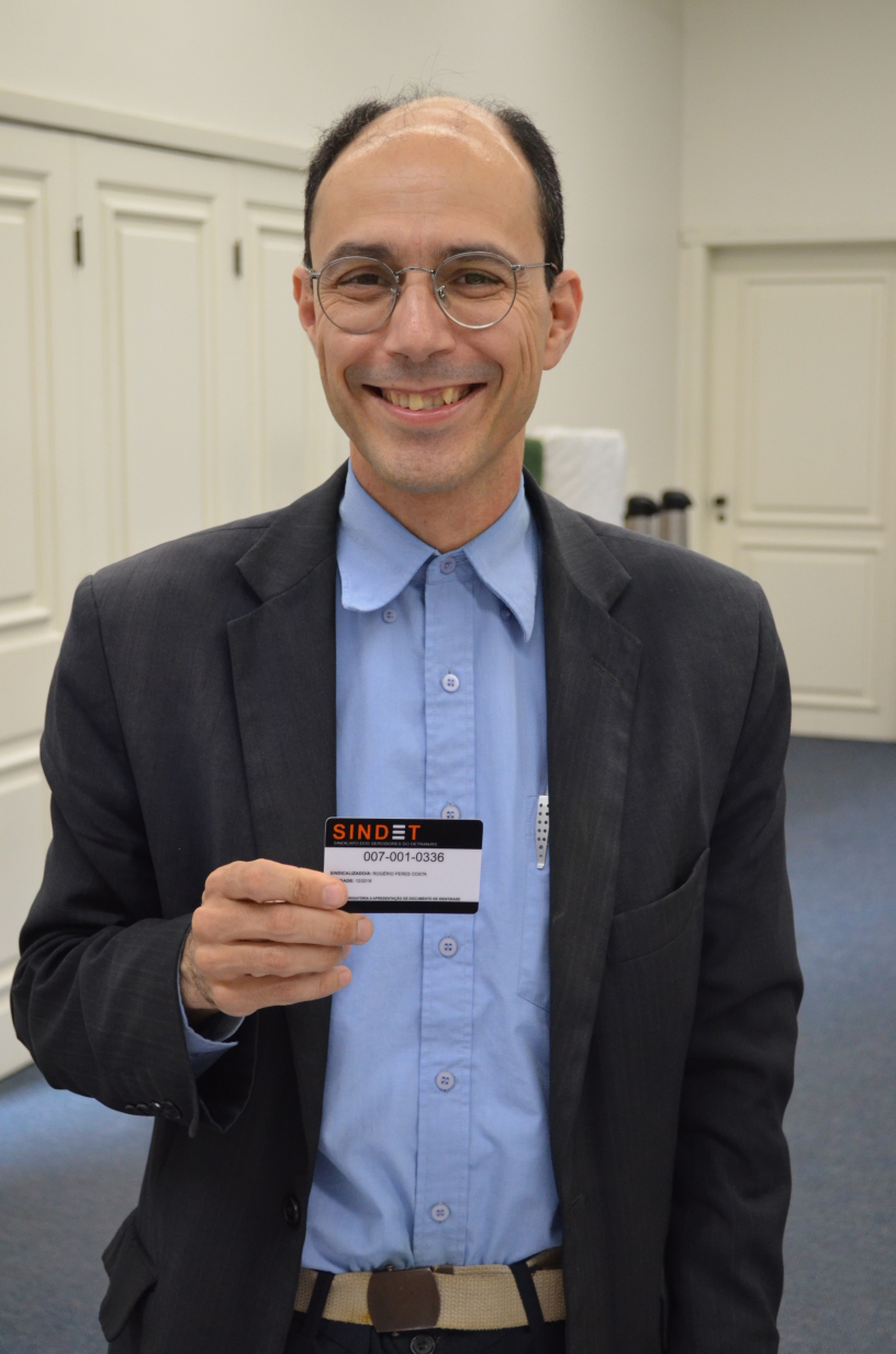 Rogério Peres recebendo a nova carteirinha SINDET